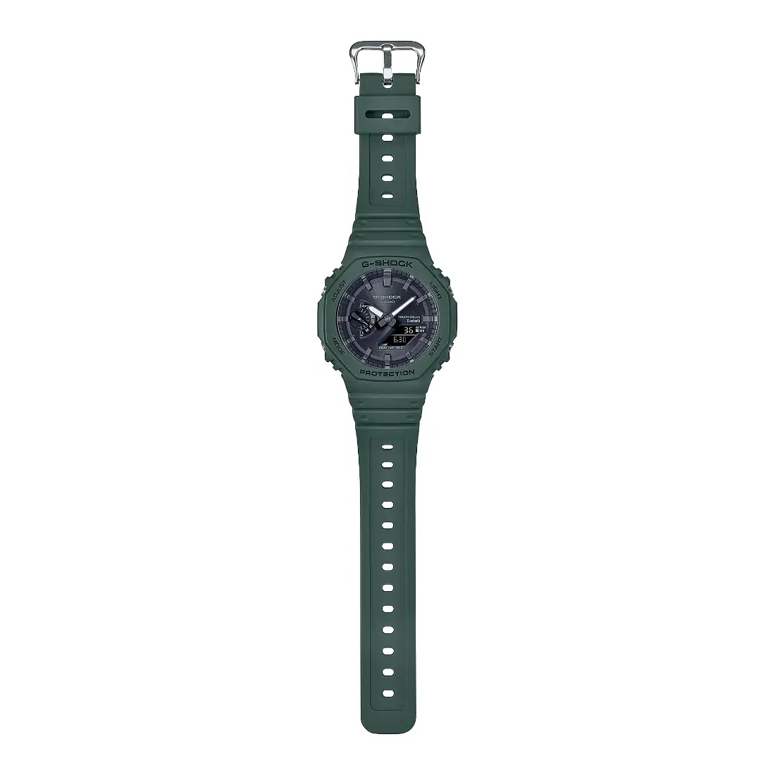 Tamaño de la caja (L× W× H): 48.5 × 45.4 × 11.9 mm Material de la caja/bisel: Carbono/resina Peso: 52 g Correa de resina Resistente a impactos Estructura Carbon Core Guard Resistencia al agua de 200 m Fuente de alimentación: pila con Tough Solar (con energía solar)