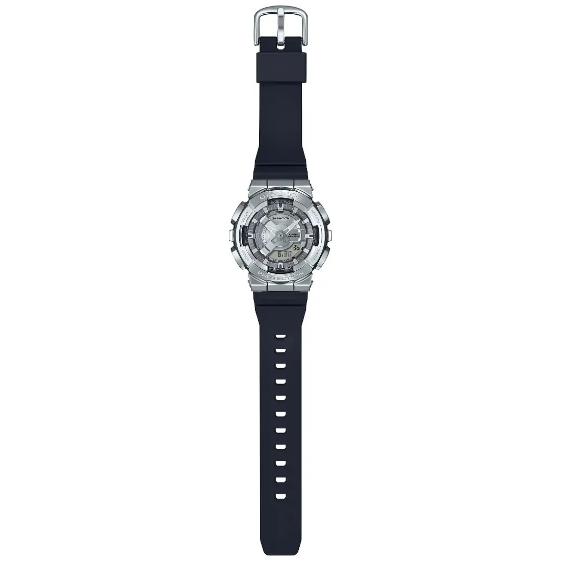 Tamaño de la caja (L× W× H): 46 × 42 × 13 mm Material de la caja/bisel: Resina/acero inoxidable Peso: 55 g Correa de resina Resistente a impactos Resistencia al agua de 200 m Fuente de alimentación: pila