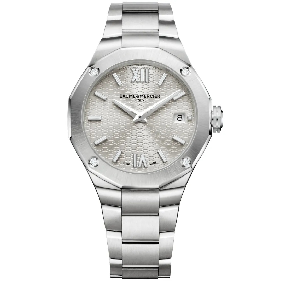 Forma: Dodecagonal Tamaño: Diámetro: 36 mm Grosor: 9.47 mm Material y acabados: acero, Acabado Pulido-satinado Fondo de caja: Fondo de caja macizo, Atornillado Bisel dodecagonal con cuatro diamantes ( Quilates 0,11 CT )
