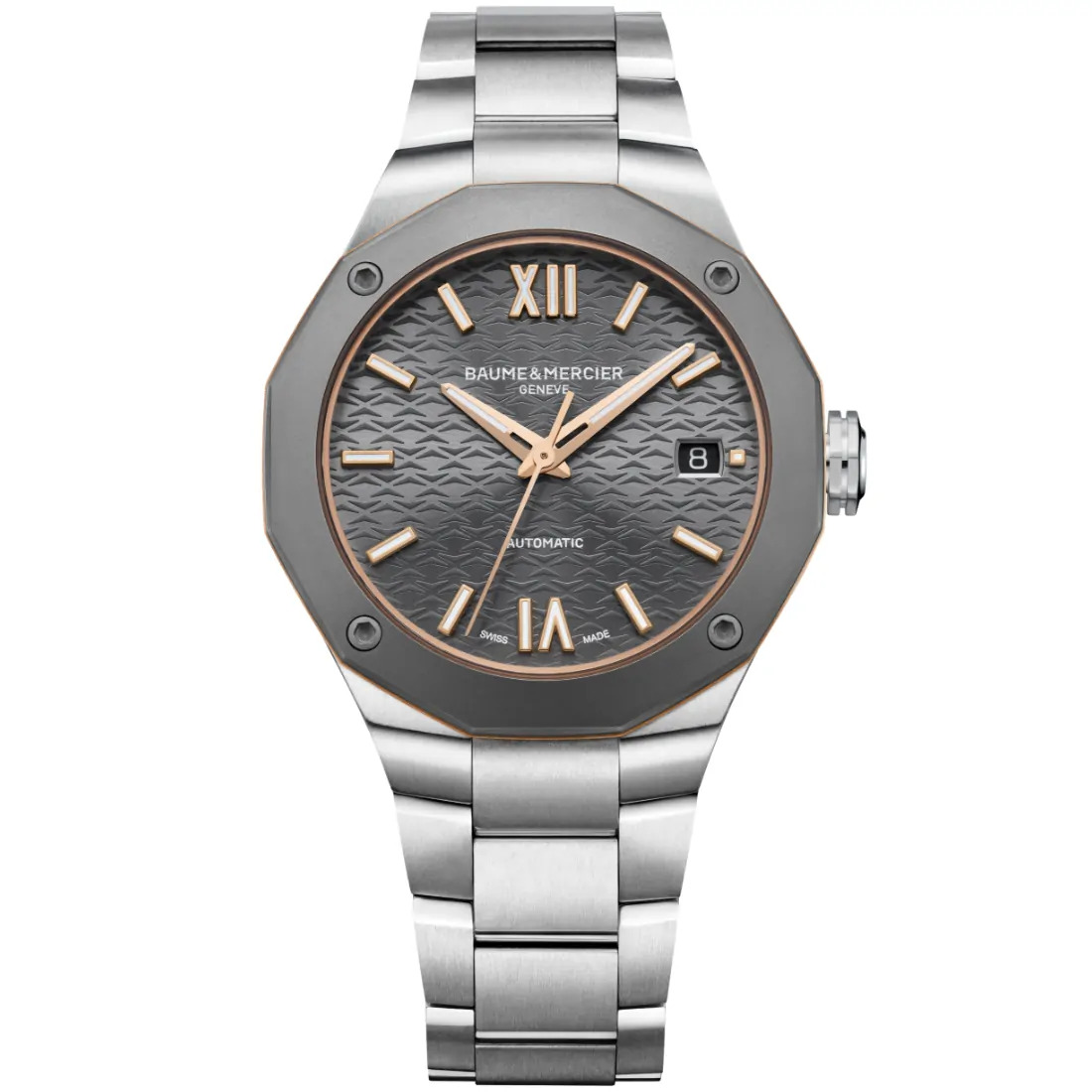 Deportivo, elegante e informal, este modelo Riviera es un reloj polifacético que gustará a numerosas personalidades. Con un movimiento automático "Swiss Made", la combinación de la caja de acero, el bisel de titanio arenado y el anillo de acero dorado aporta un aire osado al reloj. La opción ideal para quienes buscan versatilidad.