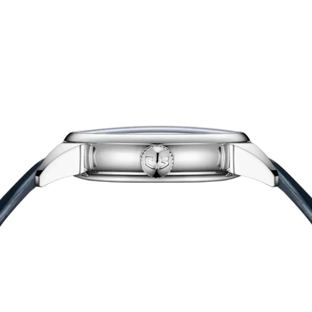 Acero inoxidable, 40 mm de diámetro, 11,5 mm de altura, cristal de zafiro de doble curvatura con tratamiento antirreflectante, resistente al agua hasta 5 ATM, fondo de caja transparente atornillado con cristal de zafiro