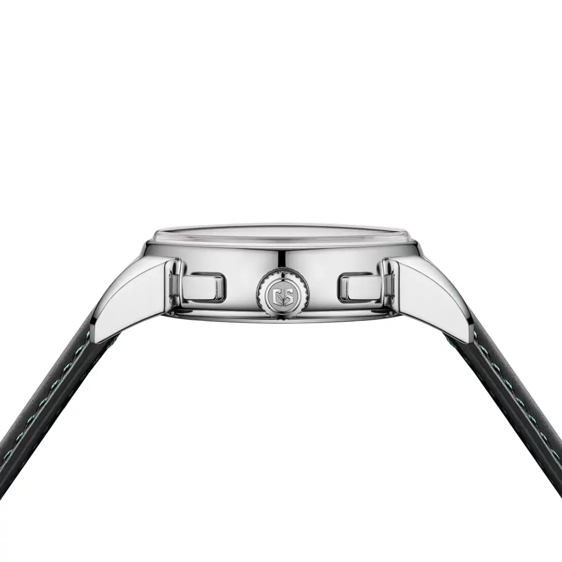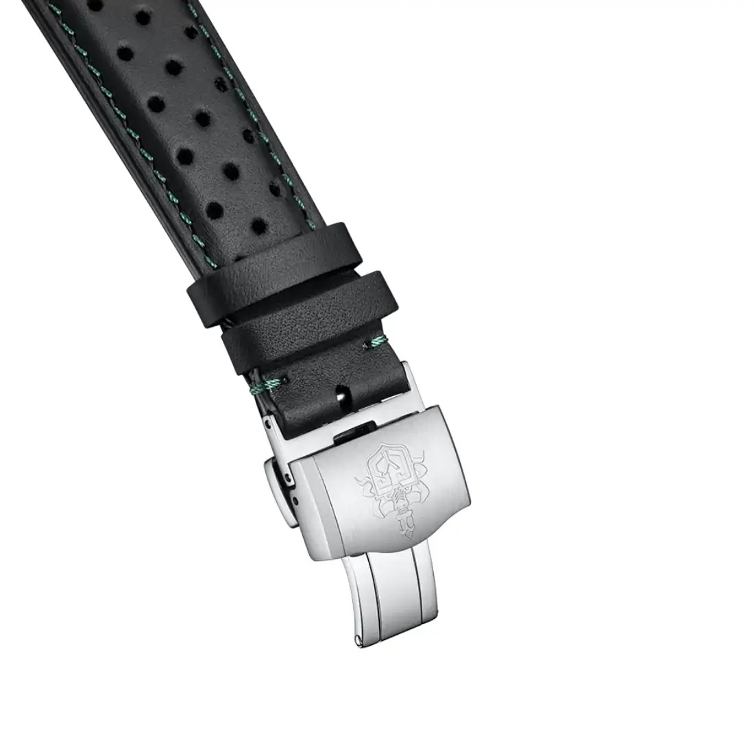 Esfera British Racing Green con índices impresos y contadores plateados.