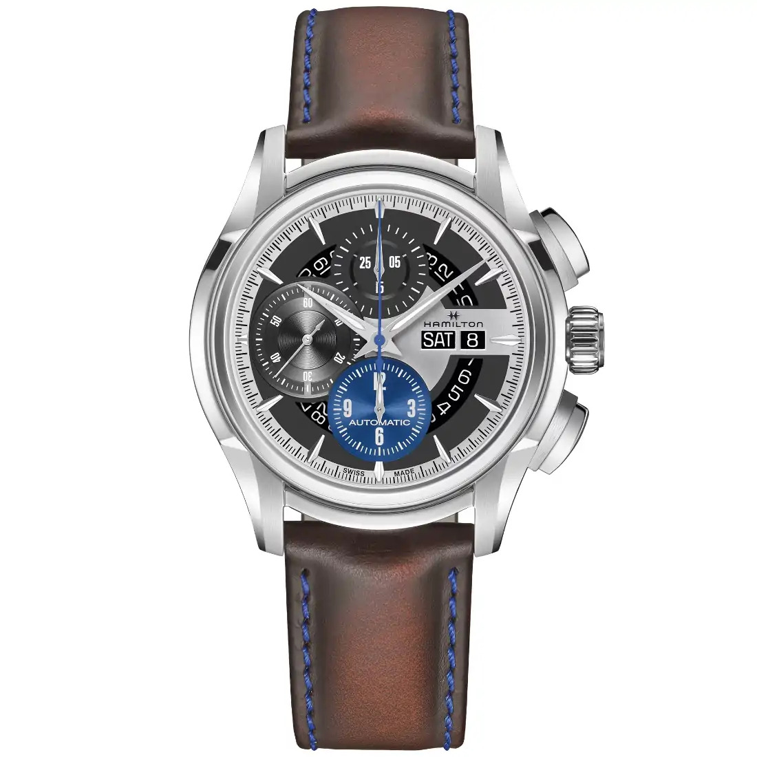 El H-41 es un movimiento de cronógrafo automático que sorprende con un segundero de cronógrafo continuo, así como con otras funciones: pulsómetro, taquímetro y telémetro. Con una reserva de marcha de 60 horas, este calibre único también incluye subesferas a las 6 y a las 12 en punto, así como la indicación día-fecha.