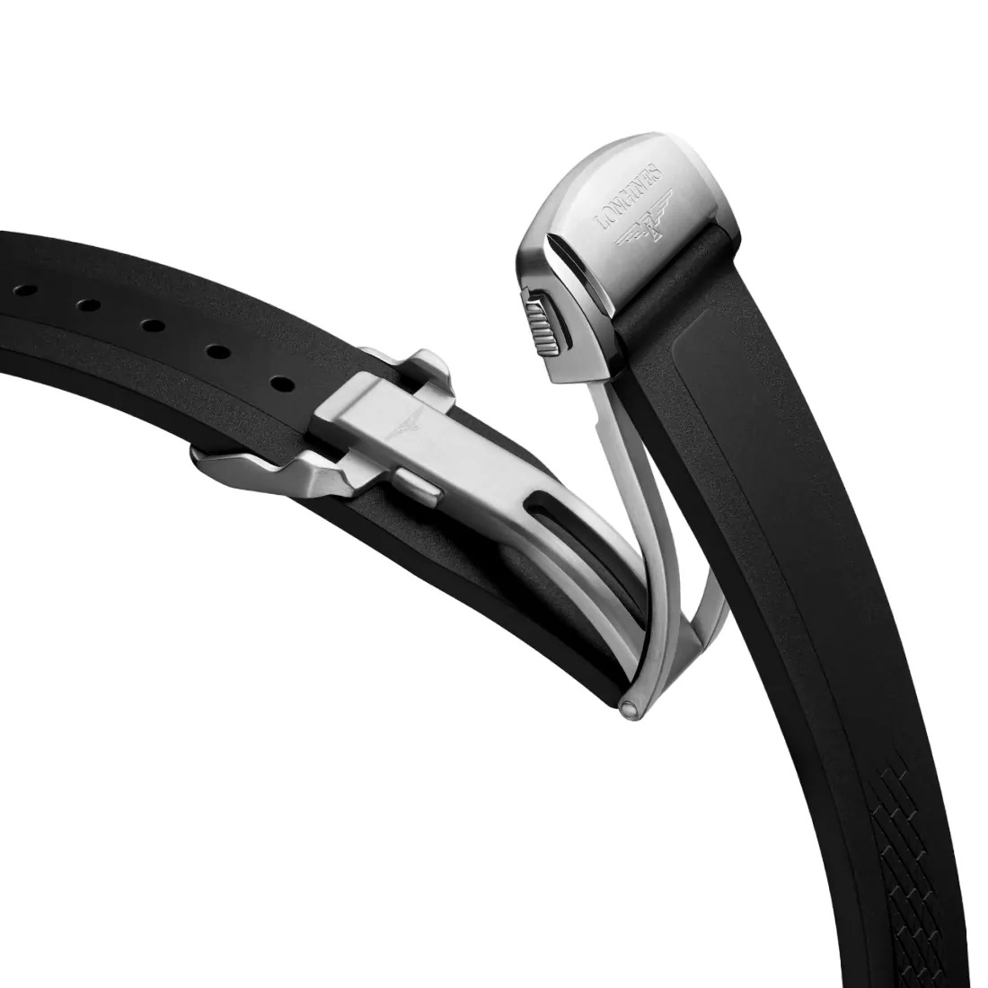 Material: Pulsera de caucho Color: Negro Hebilla: Con doble cierre desplegable de seguridad con sistema de microajuste