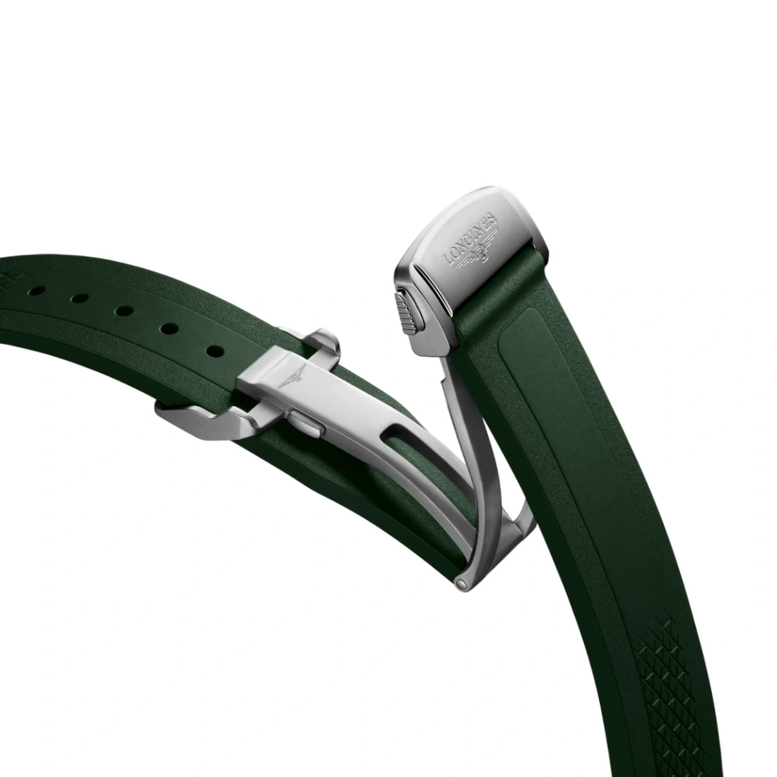 Material: Pulsera de caucho Color: Verde Hebilla: Con doble cierre desplegable de seguridad con sistema de microajuste