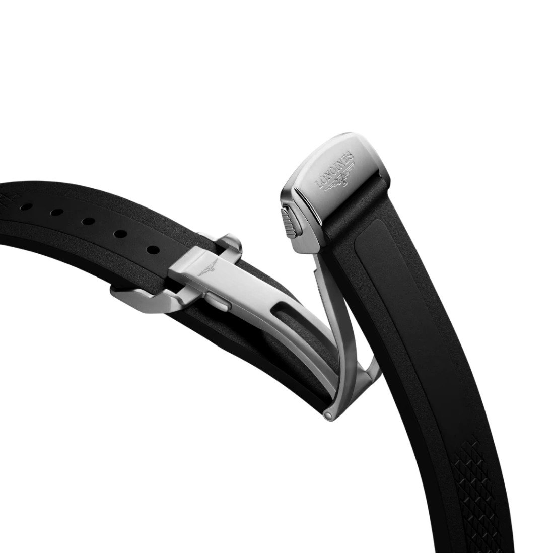 Material: Pulsera de caucho Color: Negro Hebilla: Con doble cierre desplegable de seguridad con sistema de microajuste