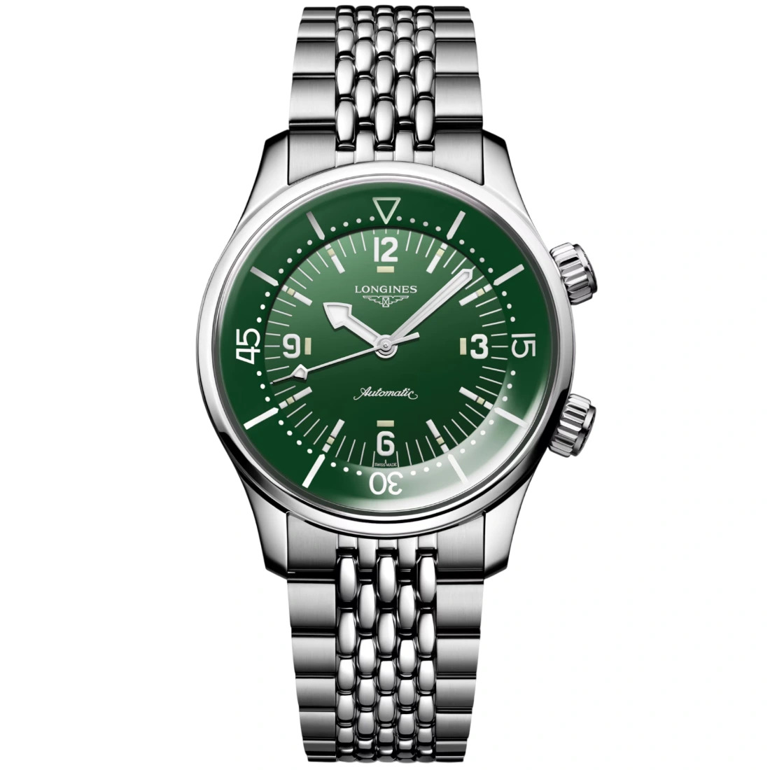 Color esfera: Verde pulida negra Círculo horario: Índices y números árabes pintados Agujas: Agujas plateadas pulidas Características: Swiss Super-LumiNova