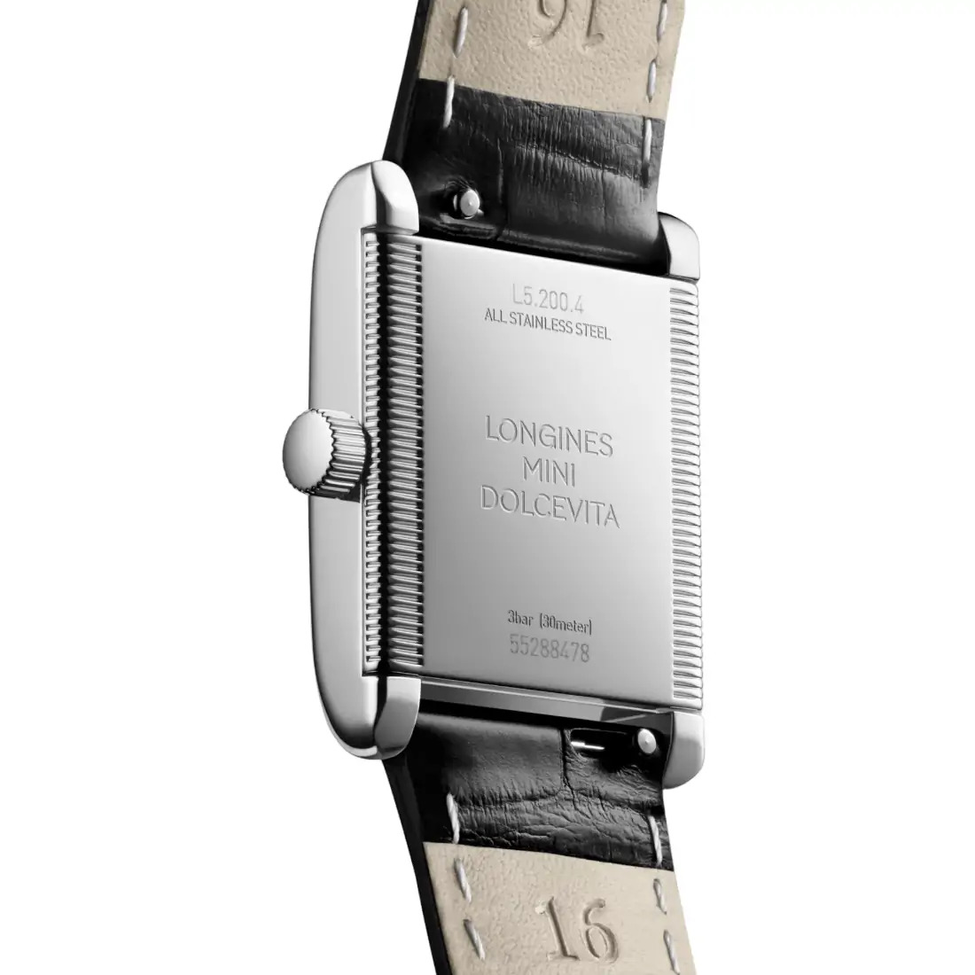 Forma: Cuadrado Material: Acero inoxidable Cristal: Cristal de zafiro resistente a los arañazos con varias capas antirreflejos a ambos lados Dimensiones: 21.50 X 29.00 mm Distancia entre asas: 16 mm Grosor: 6.75 mm Estanqueidad: Estanqueidad hasta 3 bar Peso: 21.7 g