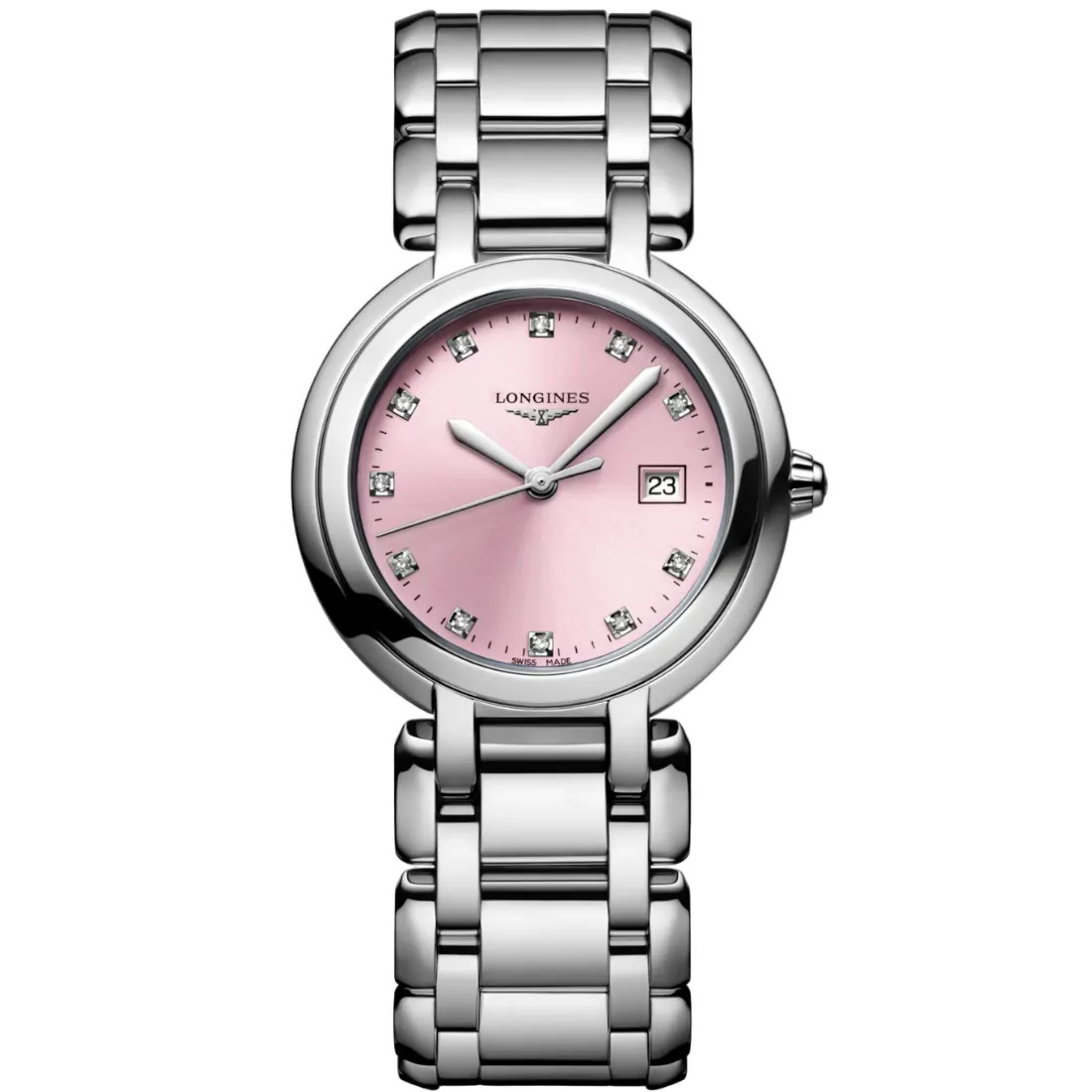 Color esfera: Rayo de sol rosa Círculo horario: Índices de diamante Agujas: Agujas plateadas pulidas Diamantes: Esfera engastada con diamantes 11 Top Wesselton VS-SI, para un total de 0.044 quilates