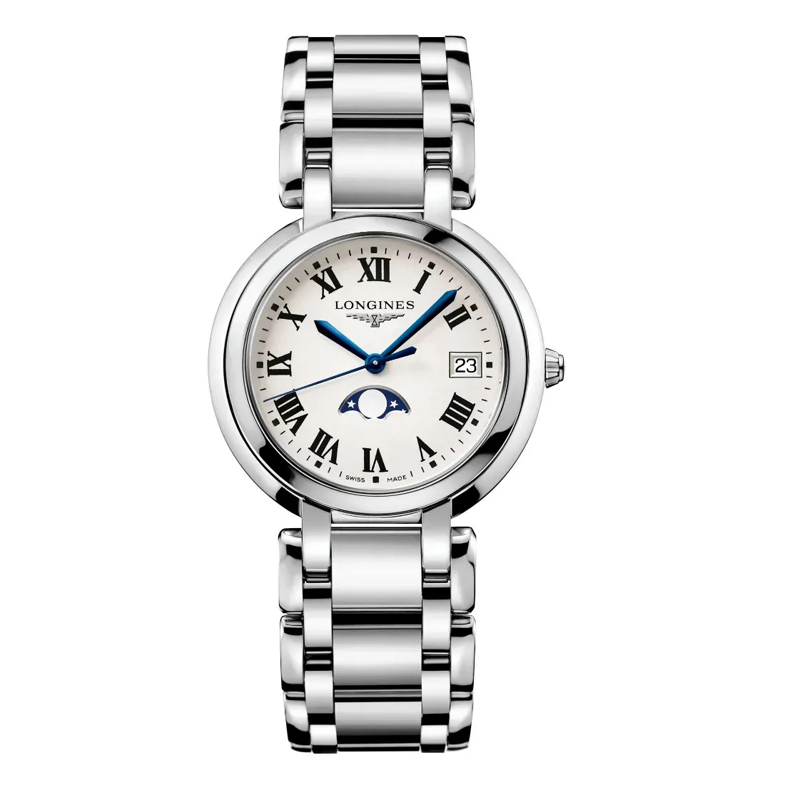 Tipo de movimiento: Cuarzo Función: Horas, minutos, segundos y fecha. Indicación de fases de la luna a las 6 Calibre: L296 Función especial: Fases de la luna, E.O.L.