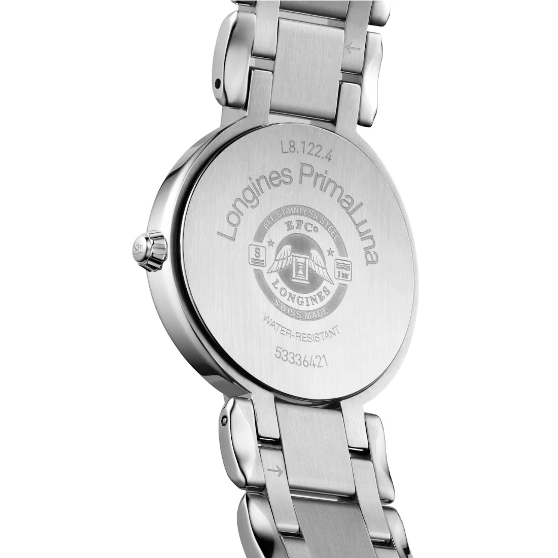 Forma: Redonda Material: Acero inoxidable Cristal: Cristal de zafiro resistente a los arañazos, con varias capas antirreflejos Dimensiones: Ø 30.00 mm Distancia entre asas: 7 mm De asa a asa: 37.00 mm Grosor: 8.00 mm Estanqueidad: Estanqueidad hasta 3 bar Peso: 87.2 g