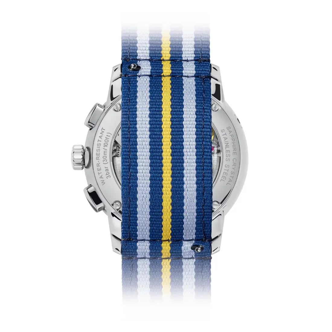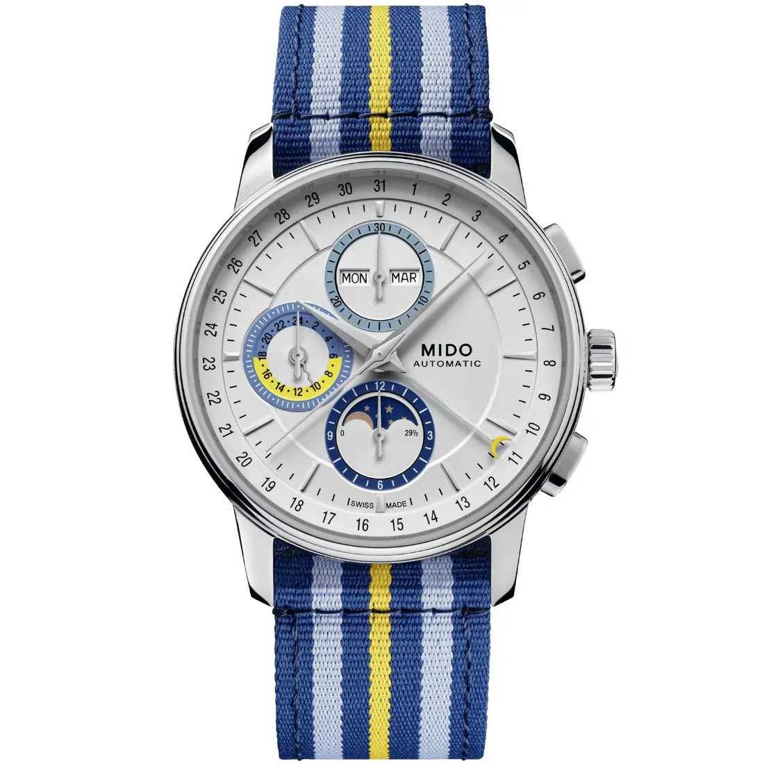 Funciones: Día, Mes, Cronógrafo, Fecha con manecilla, Fase lunar, 24 Horas, Segundero pequeño Reserva de marcha: Reserva de marcha de hasta 60 horas Movimiento: Automático ETA Mido
