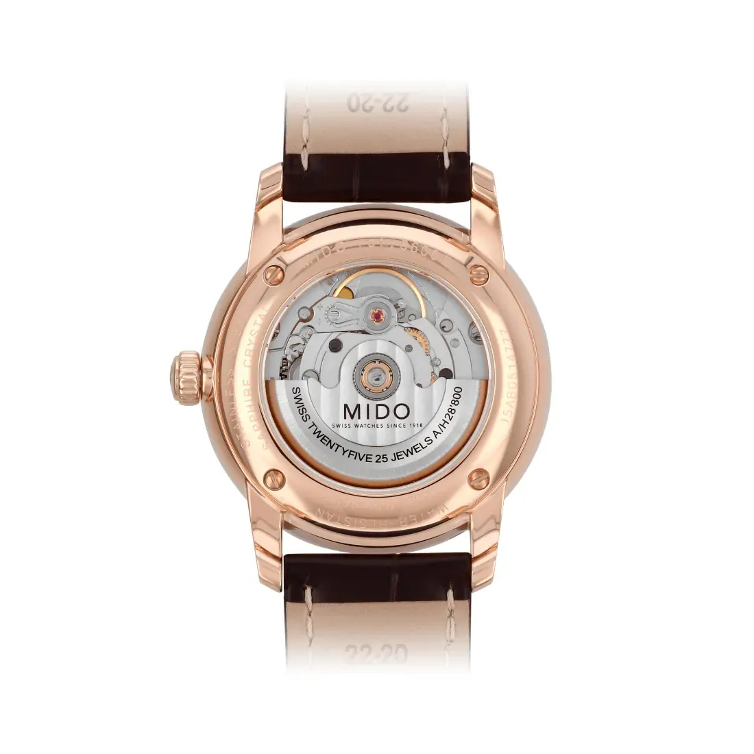 Funciones: Fecha Calibre: Automático Mido Calibre 80 (base ETA C07.611)Movimiento: Mido Automático Reserva de poder: Reserva de marcha de hasta 80 horas Calibre Diámetro (mm): 25.60 Joyas: 25 Calibre: 11.5