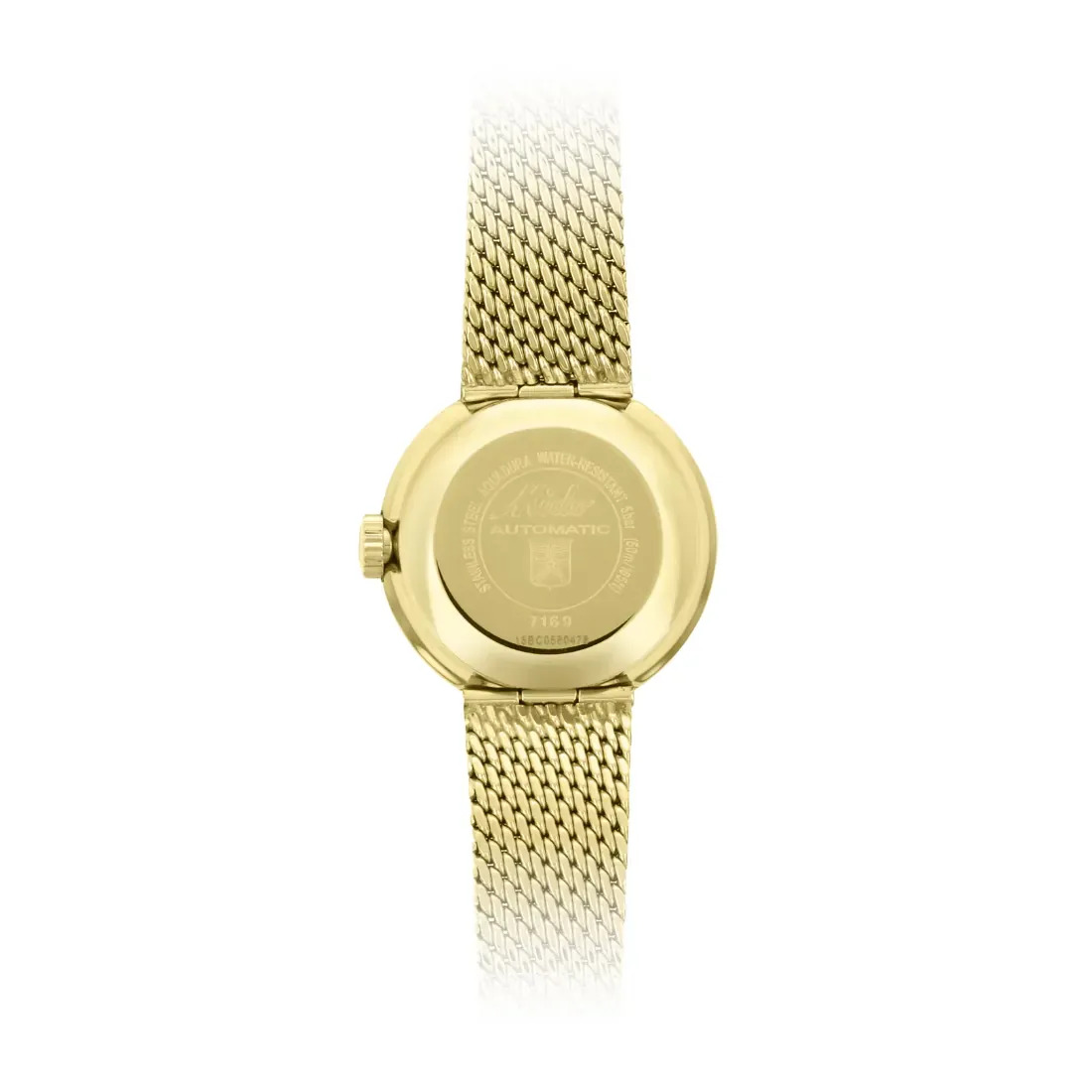Cristal: Cristal acrílico Material de la caja: Acero inoxidable con tratamiento PVD oro amarillo Grueso (mm): 10.5 Forma de la caja: Redondo Anchura: 23.50 Longitud: 23.50