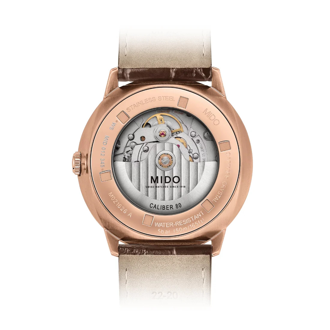 Movimiento: Automático ETA Mido Funciones: Fecha, Gran fecha Reserva de marcha: Reserva de marcha de hasta 80 horas