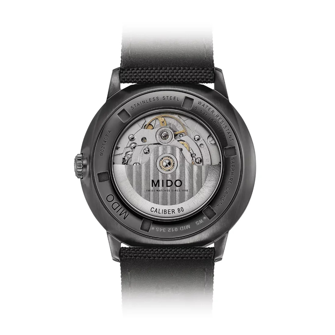 Funciones: Fecha Calibre Automático: Mido Calibre 80 (base ETA C07.611) Movimiento: Mido Automático Reserva de marcha: Reserva de marcha de hasta 80 horas Diámetro movimiento (mm): 25.60 Joyas: 25 Calibre: 11.5