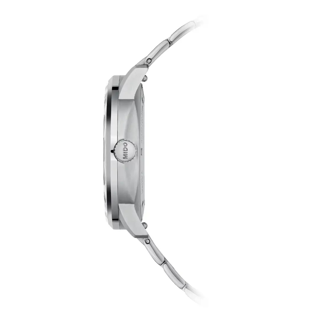 Calibre: 11.5 Diámetro movimiento (mm): 25.60 Joyas: 21 Funciones: Fecha Reserva de marcha: Reserva de marcha de hasta 72 horas Movimiento: Automático ETA Mido Calibre: Automático Mido Calibre 72 (base ETA A31.111)