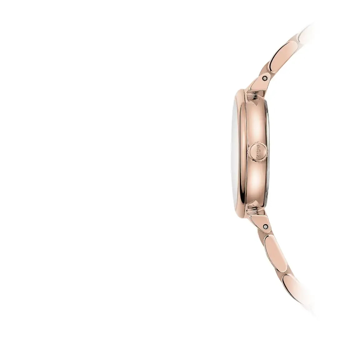 Forma de la caja: Redondo Longitud: 26.70 Anchura: 25.00 Espesor Medio (mm): 6.1 Astas_ 9.00 Material de la caja: Acero inoxidable con tratamiento PVD de oro rosa Cristal: Cristal zafiro