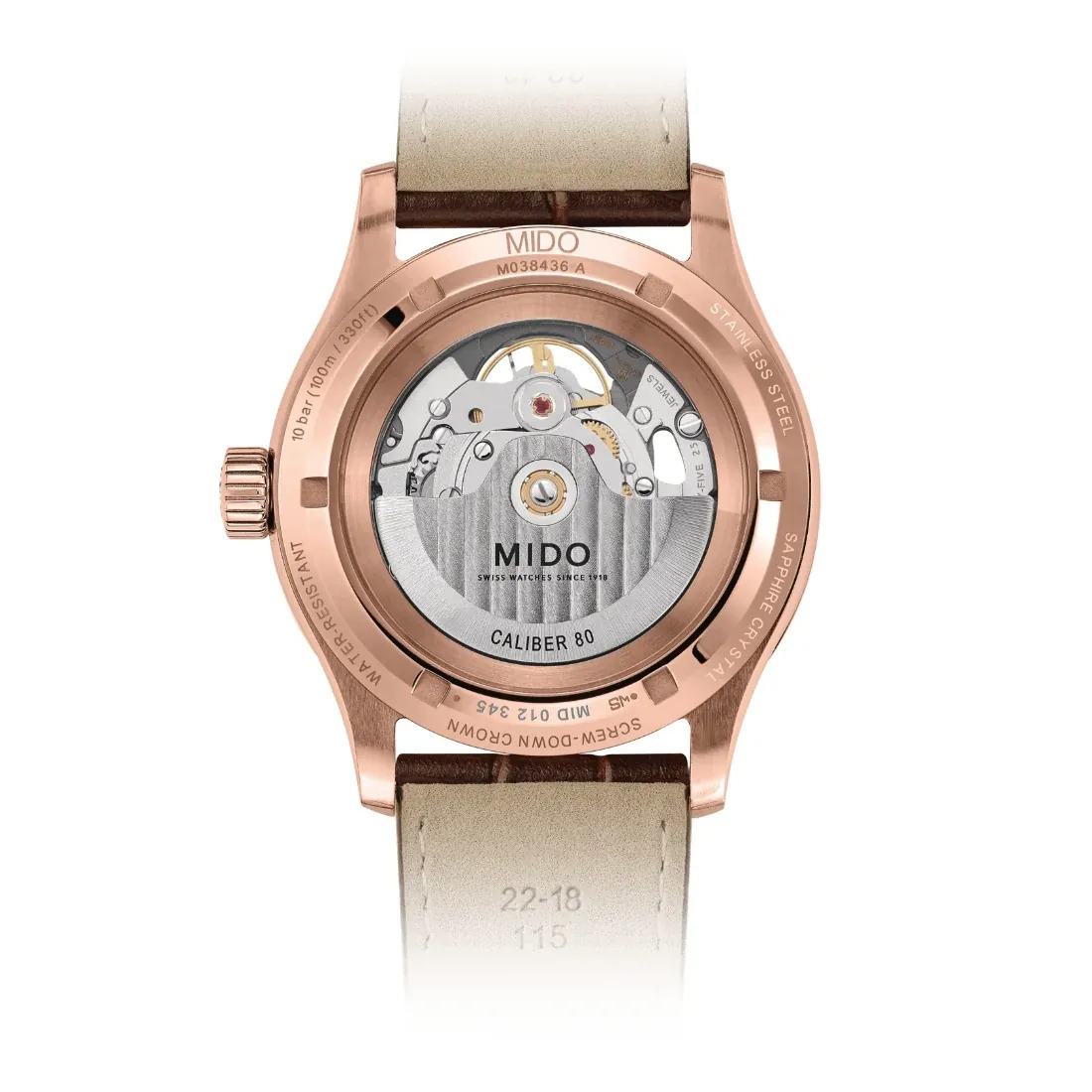 Calibre: Automático Mido Calibre 80 (base ETA C07.631) Movimiento: Mido Automático Reserva de marcha: Reserva de marcha de hasta 80 horas Diámetro movimiento (mm): 25.60 Joyas: 25 Calibre: 11.5