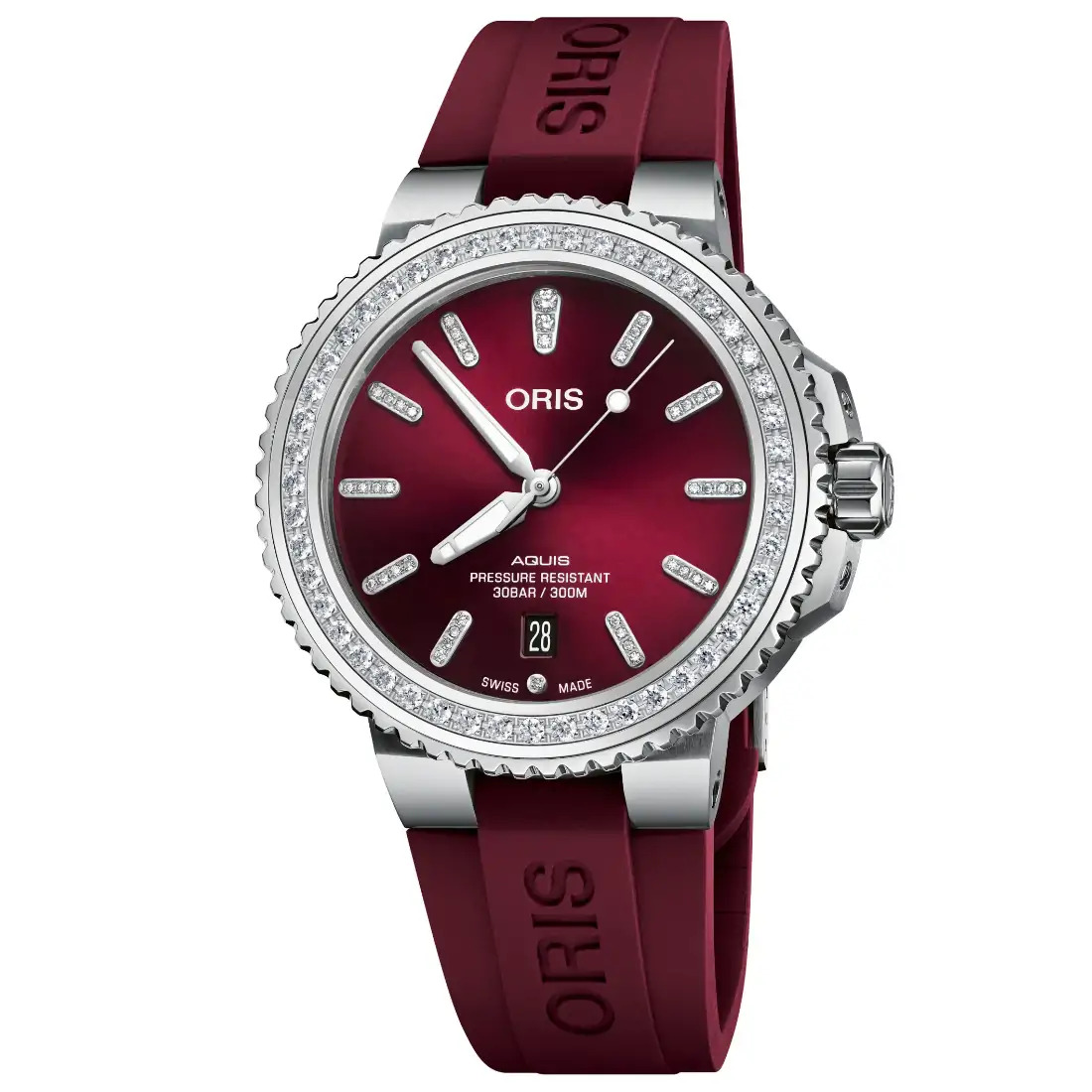 Esfera roja engastada con 44 diamantes Índices y agujas Superluminova BG W9