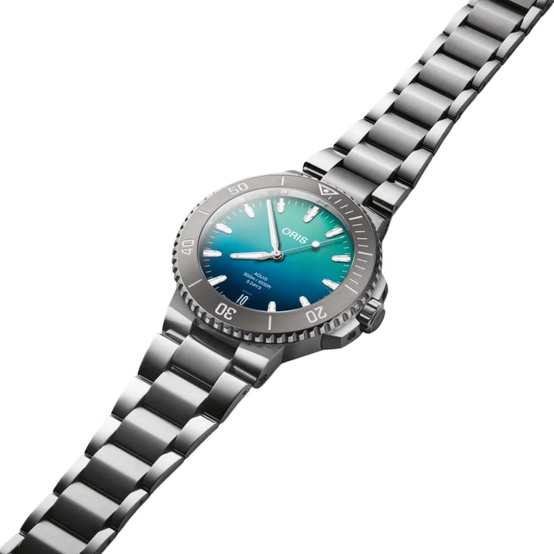 Caja: Caja de acero, bisel de tungsteno con escala minutera. Zafiro, ambas caras abombadas, capa interior antirreflejos. Acero inoxidable, atornillada, grabados especiales. Diámetro: 43.50 mm Resistencia al agua: 30 bar Anchura entre cuernos: 23 mm