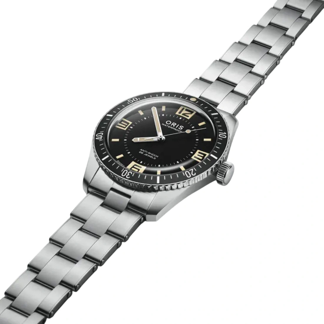 Caja: Caja de acero, bisel con escala minutera. Zafiro, ambas caras abombadas, capa interior antirreflejos. Acero inoxidable, grabados especiales, atornillado. Diámetro: 40.00 mm Hermeticidad: 10 bar Anchura entre cuernos: 20 mm