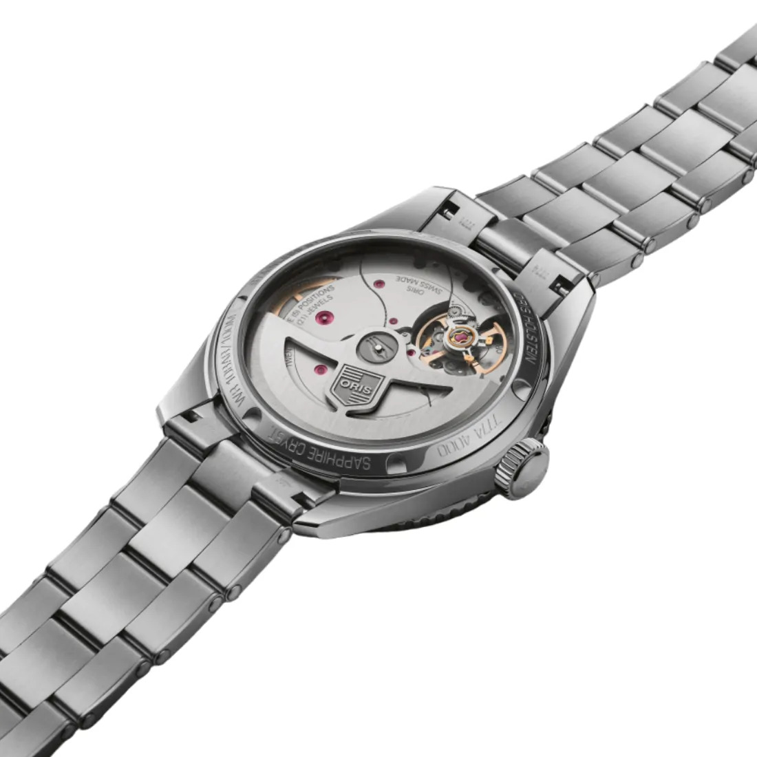 Movimiento: Agujas horas, minutos y segundos centrales, excelente cronometrador y paro segundo Reserva de marcha: 120 h Caliber: CALIBRE 400 Dimensiones: Ø 30.00 mm, 13 1/4’’’ Carga: Remonte automático Frecuencia: 28’800 A/h, 4 Hz