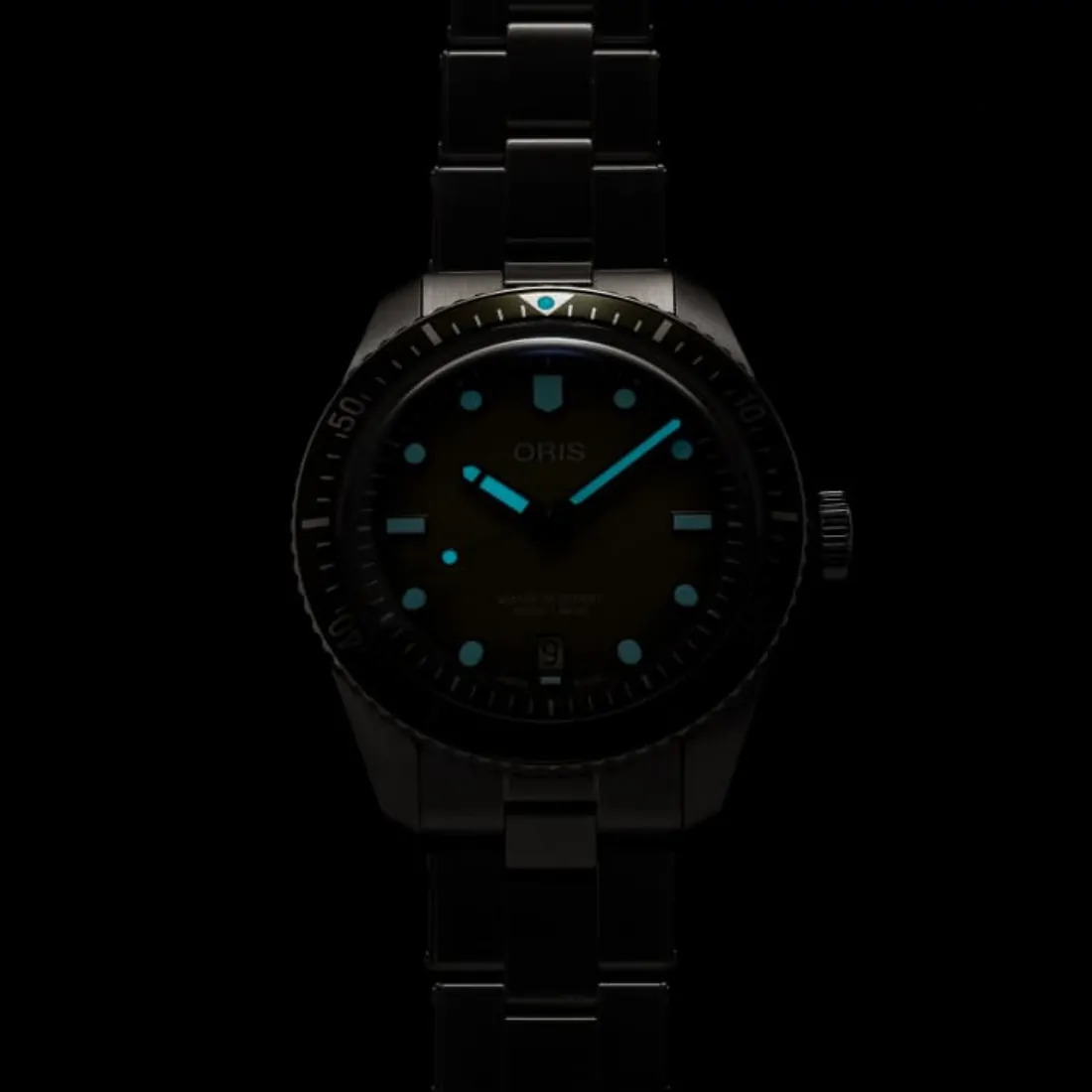 Caja: Caja multipiezas acero inoxidable, escala minutos anillo superior. Zafiro, ambas caras abombadas, capa interior antirreflejos. Acero inoxidable, atornillada, grabados especiales. Diámetro: 40.00 mm Resistencia al agua: 10 bar Anchura entre cuernos: 20 mm