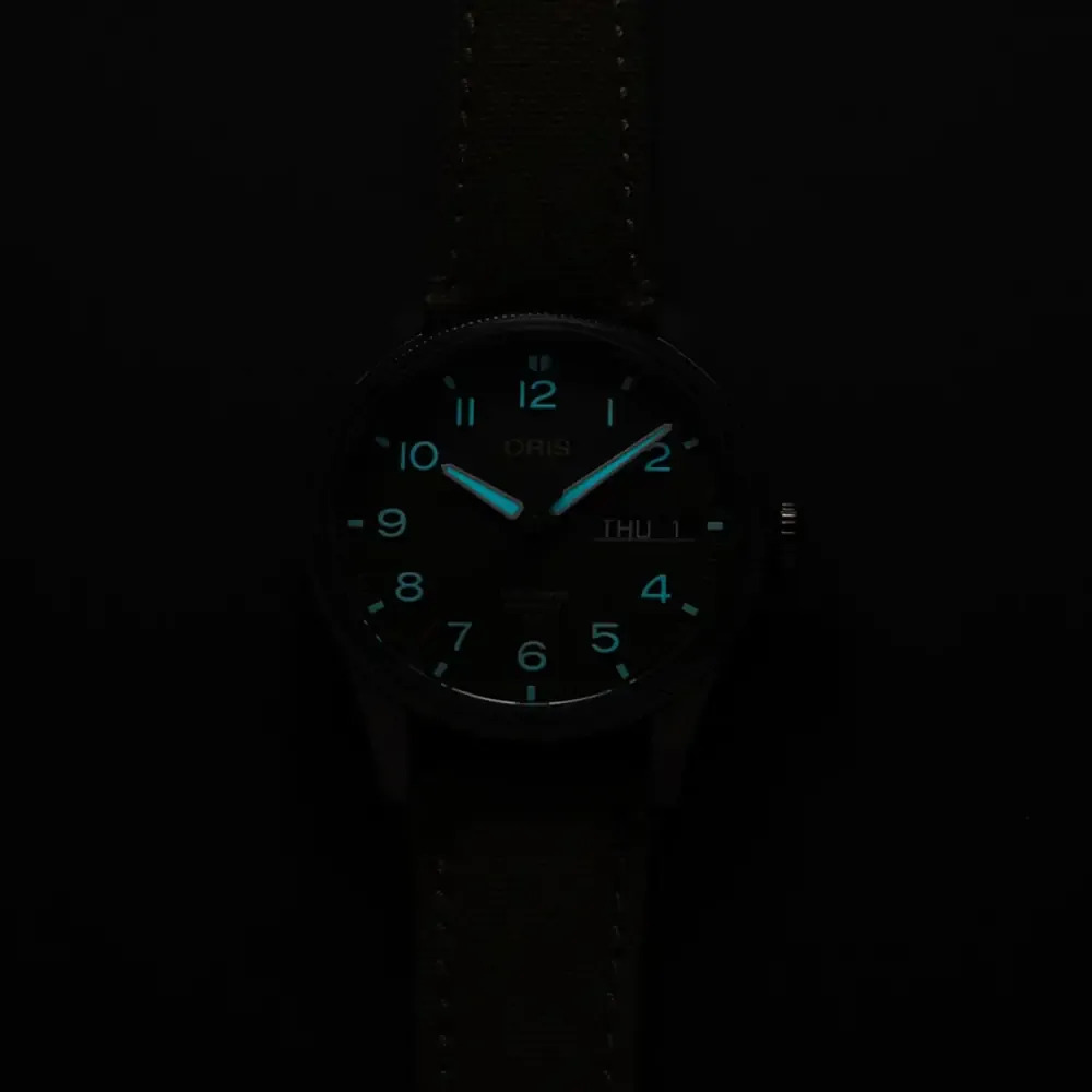 NÚMERO Oris 752, base SW 220-1 DIMENSIONES Ø 32.20 mm, 14 1/4’’’ FUNCIONES Agujas centrales para horas, minutos y segundos, ventanillas individuales fecha y día ampliadas, corrector fecha y día, función cronometradora de precisión y paro segundo REMONTE Remonte automático RESERVA DE MARCHA 41 h VIBRACIONES 28’800 A/h, 4 Hz RUBÍES 26