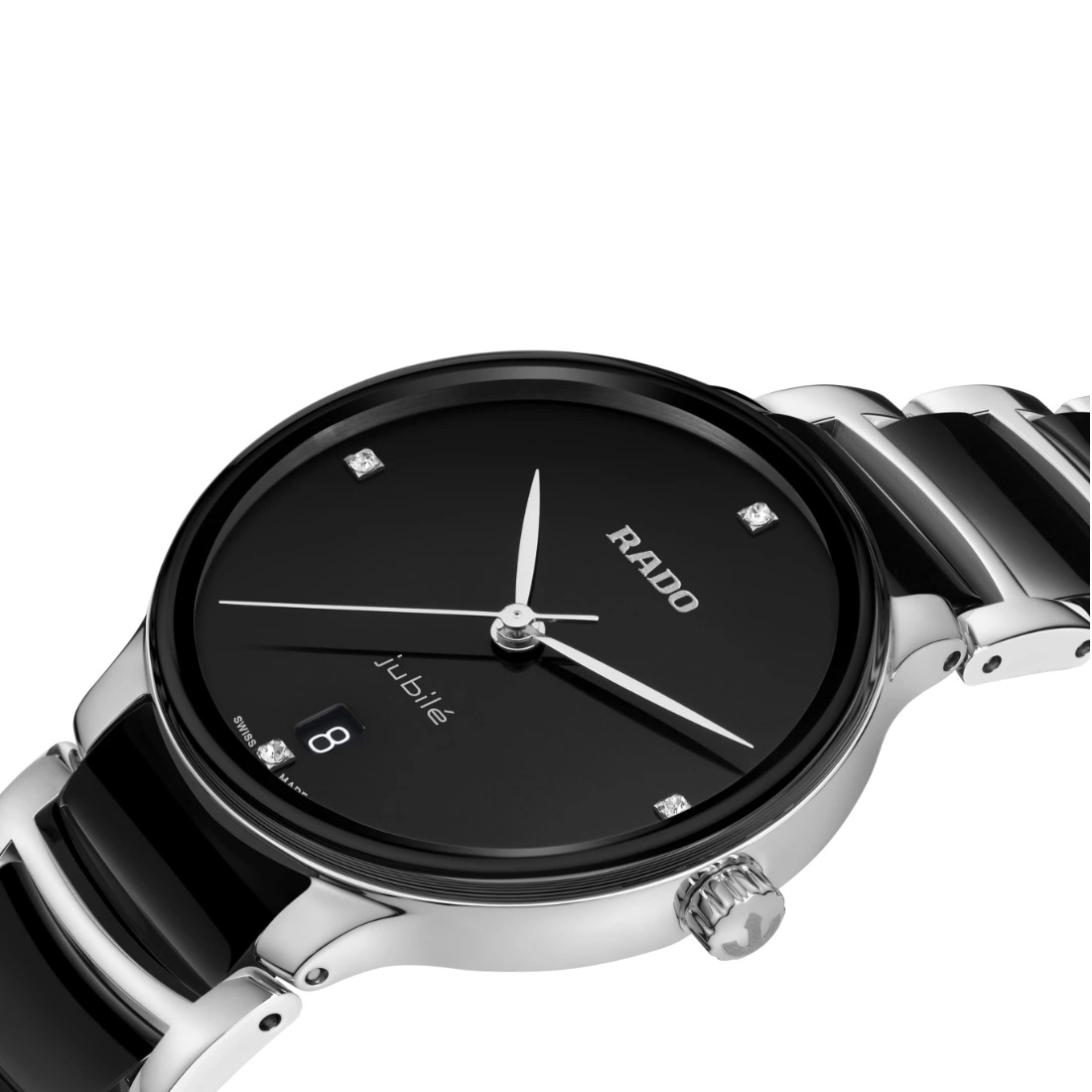 Color de la esfera: Negro Indicador de fecha en la esfera Joyas en la esfera: con 4 diamantes