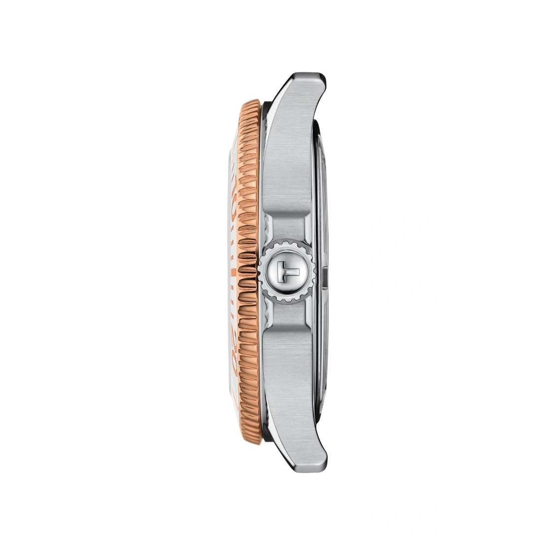 Referencia de la correa/cadena: T605050687 Detalles de la correa: Acero Inoxidable Recubrimiento del brazalete: PVD Color de la correa: Gris, Oro rosa 5n Cierre: Cierre plegable con seguridad y pulsadores, Pulsera intercambiable de fácil apertura