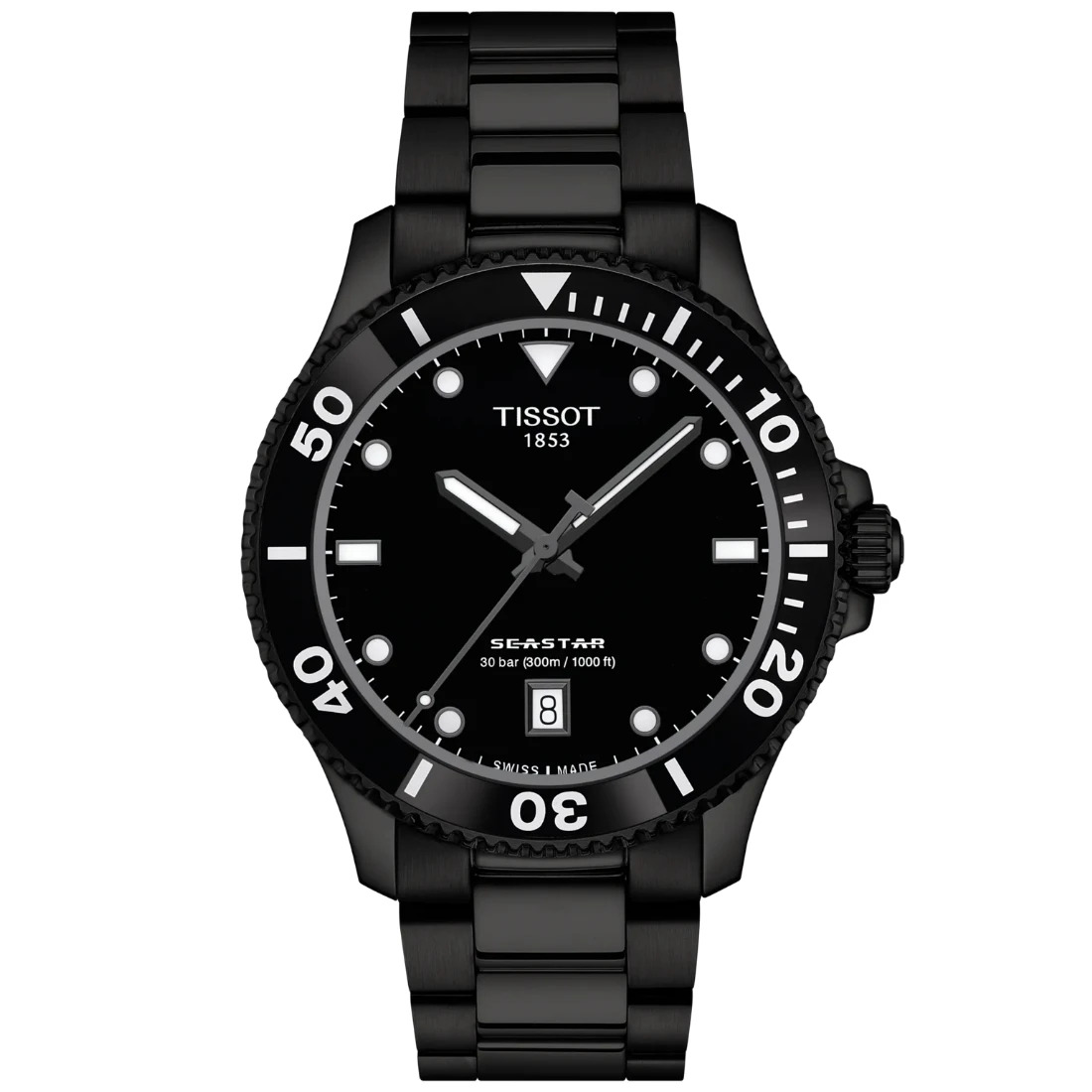 Referencia de la correa/cadena: T605050708 Detalles de la correa: Acero Inoxidable Recubrimiento del brazalete: PVD Color de la correa: Negro Cierre: Cierre plegable con seguridad y pulsadores, Pulsera intercambiable de fácil apertura