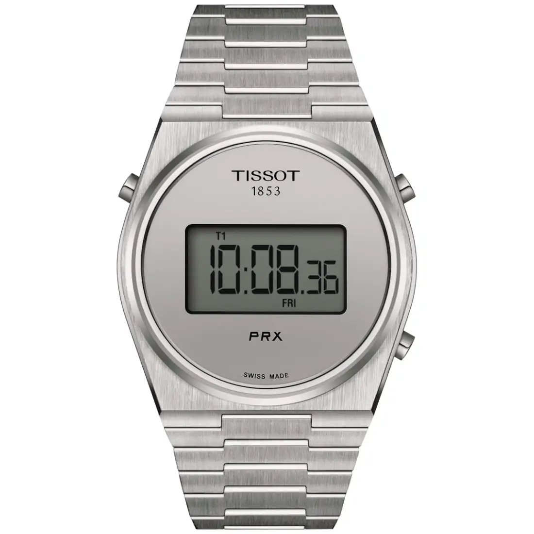 El reloj Tissot PRX Digital, una combinación armoniosa del icónico diseño PRX de 1978 y el Tissot Digital Quartz (Calibre 4012), exhibe brillantemente un híbrido de épocas pasadas e influencia digital. Combinando a la perfección la estética retro con un toque contemporáneo, es el cronometrador de los pioneros de hoy. El PRX Digital en una variedad de colores, se adapta a todas las muñecas, mientras que la multitud de funciones (zonas horarias duales, fecha y día, cronógrafo y más) satisfacen todas las necesidades.