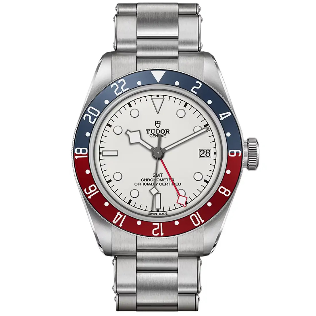Corona a rosca de acero, con la rosa de TUDOR en relieve, con tubo de corona circular de acero satinado